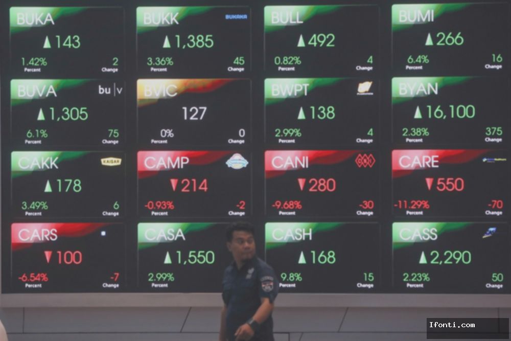 Sementara itu, saham top gainers hari ini dihuni oleh PT Prasidha Aneka Niaga Tbk. (PSDN) yang melonjak 34,53% ke Rp187, sementara PT Perintis Triniti Properti Tbk. (TRIN) tumbuh 24,39% menjadi Rp765 per saham.